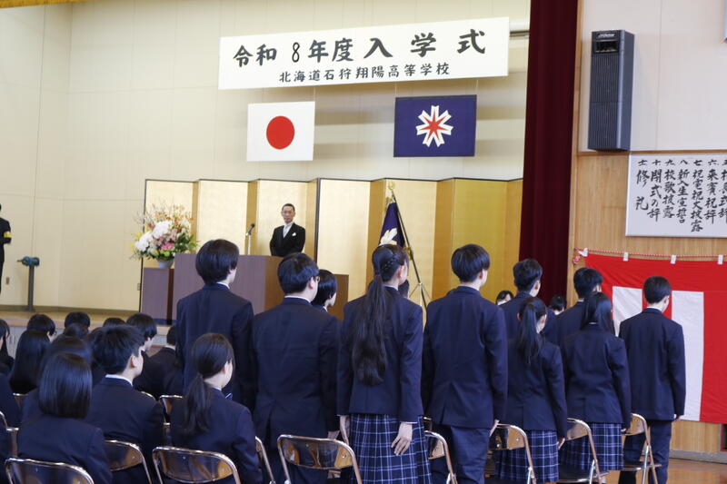 2つの式に先立ち,表彰伝達がありました。「2026第16回道展U21」において本校美術工芸部は奨励賞2名と入選6名,「第34回国際高校生選抜書展」入選に本校書道部1名,また「石狩市教育委員会表彰」児童生徒教育奨励賞に本校介護実践選抜チーム3名という結果でした。