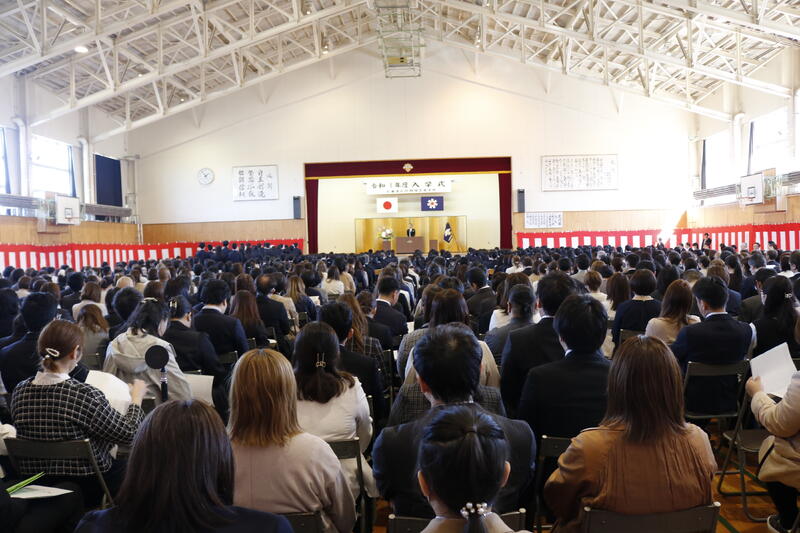 320名の新入生を迎え、生徒会長から歓迎の言葉、新入生代表から近いの言葉がありました。
