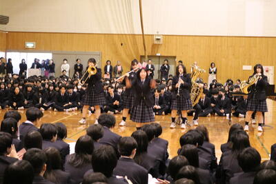 1月25日(日)吹奏楽局による「アンサンブル発表会」が開催されました。この発表会はアンサンブル力の向上を目指し、冬期間の課題として取り組んできた成果を保護者の皆さんの前で発表するというものです。同じパートを中心に編成した10チームが、ジブリやディズニーなど聴き馴染みのある曲を披露しました。この日は悪天候でしたが、ご来校いただいた保護者の皆様から大きな拍手をいただくことができました。今回の経験を今後の活動に生かし、更なるレベルアップを図れるよう頑張っていきますので、応援よろしくお願いいたします。