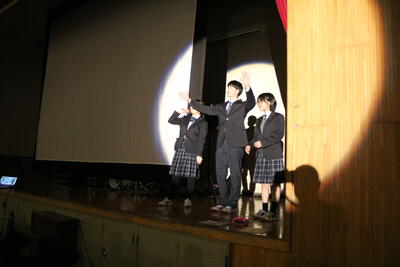 3年次生は2月27日(金)に同窓会入会式に臨みました。役員による挨拶時に,校歌斉唱とパフォーマンスが行われ,少々圧倒されながらも,大先輩の方々とのつながりを感じました。その後クラス幹事紹介と代表幹事の入会宣言に続き,会則・事業説明を受け,入会式は無事終了しました。