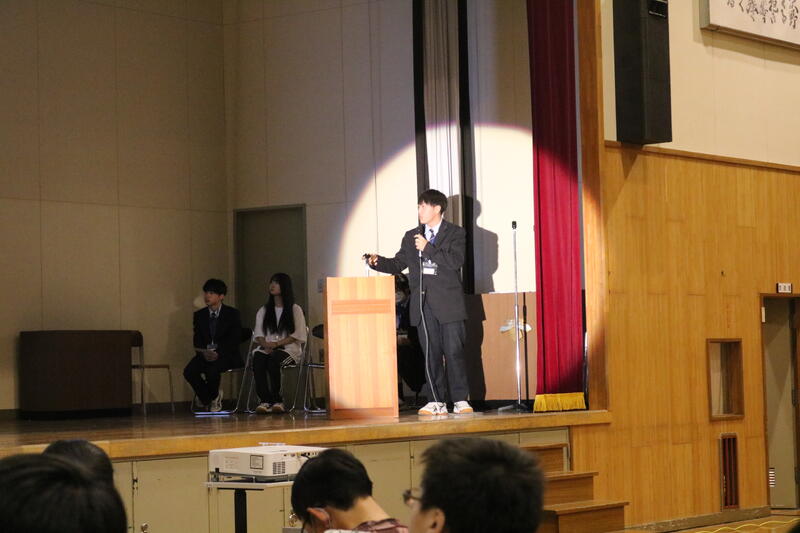 校長講話では次のことが話されました。①高校生活の中の各年次の時間的位置をふまえ,前期のふりかえりを各人の目標・成績・生活等に関して行い,理想に向かってつながるものにすること。②大阪万博で紹介されている様々な技術が未来を形作っていくように,意欲を持って創造することに挑戦すること。③戦後80年目の節目に,人類のすぐれた技術を人の幸せのために使うには,そのための想像力を不断の学びで身につける必要があること。