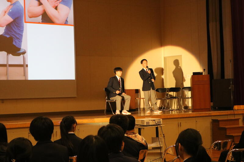 また、5,6校時は「2年次スポーツ概論」の授業において、本校と連携協定(高大連携事業)を結んでいる北翔大学の方が来校され、出張講義をしていただきました。内容は、「ハイパフォーマンスを生み出すスポーツ心理学」と題し、前半は「スポーツとは」、「緊張とは」といった内容で講義をいただき、後半は「ジョハリの窓を活用した自己分析実習」、「大学とは」といった内容で実習・講義をしていただきました。