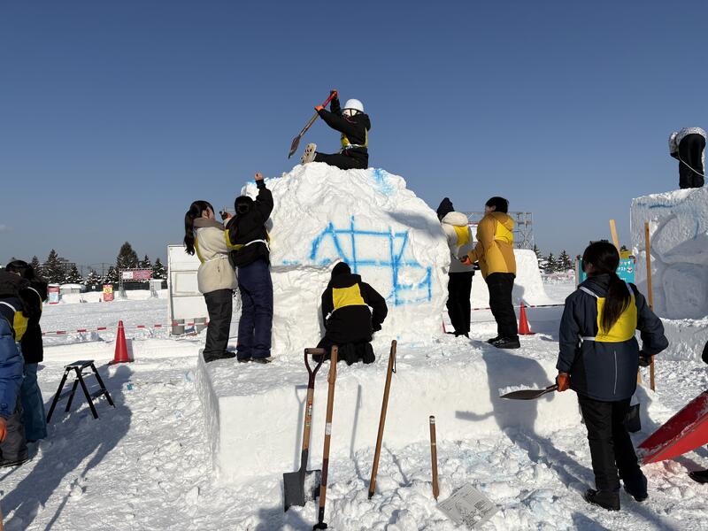 2月4日(水)美術・工芸部が、さっぽろ雪まつりつどーむ会場で開催されたスノーオブジェコンテストに参加しました。女子生徒のみ少数の参加、最近の大雪の影響参加が危ぶまれましたが、家庭学習期間の3年次生の参加もあり無事作品を制作することが出来ました。雪質は良好、6時間30分の長いようで短い制作時間に、協力して取り組みました。昼食前は体力の限界を感じながらも、皆で楽しく取り組めたこと、団結力が高まったことが大きな成果です。雪まつり会期中展示されますので、ぜひ足をお運び下さい。参加にご協力いただいた皆さん、応援くださった皆さん、本当にありがとうございました。