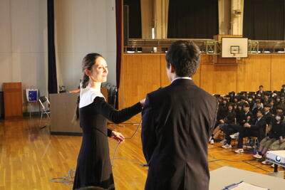 11月21日(金)5・6時間目、フリーアナウンサーのアンヌ遥香様をお迎えして、社会人講演会が実施されました。講演では生徒がアナウンス体験をする場面もあり、充実した講演会となりました。